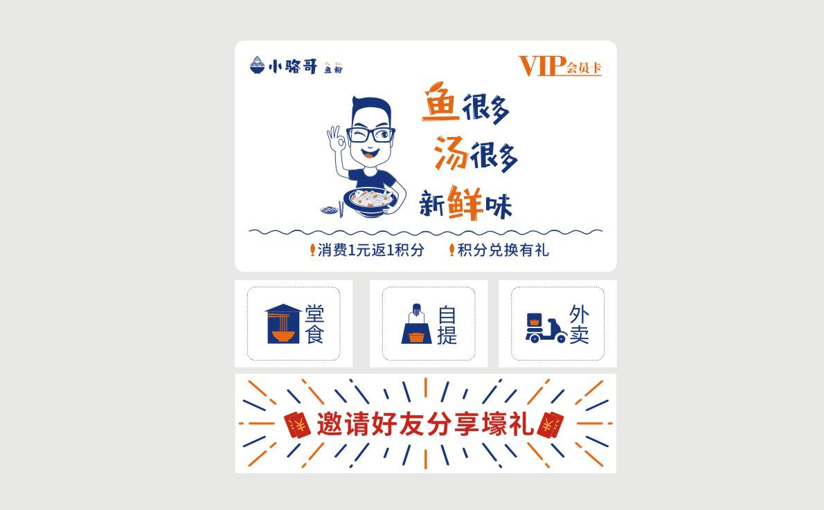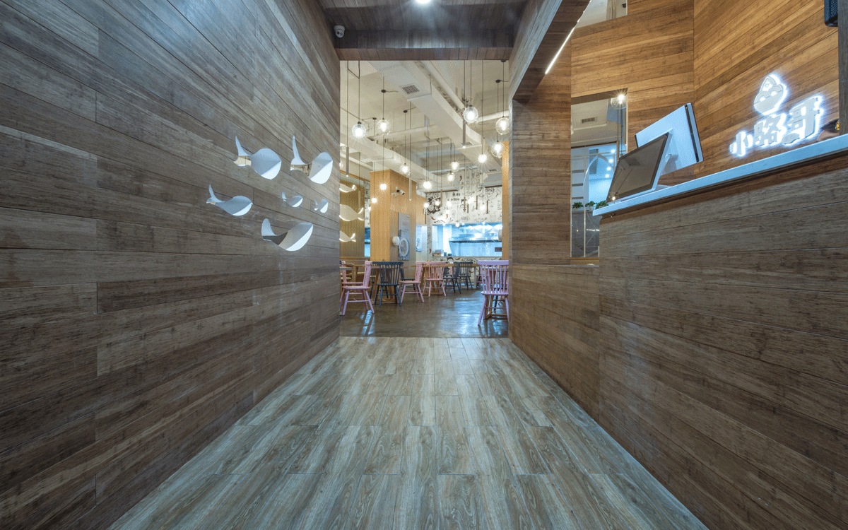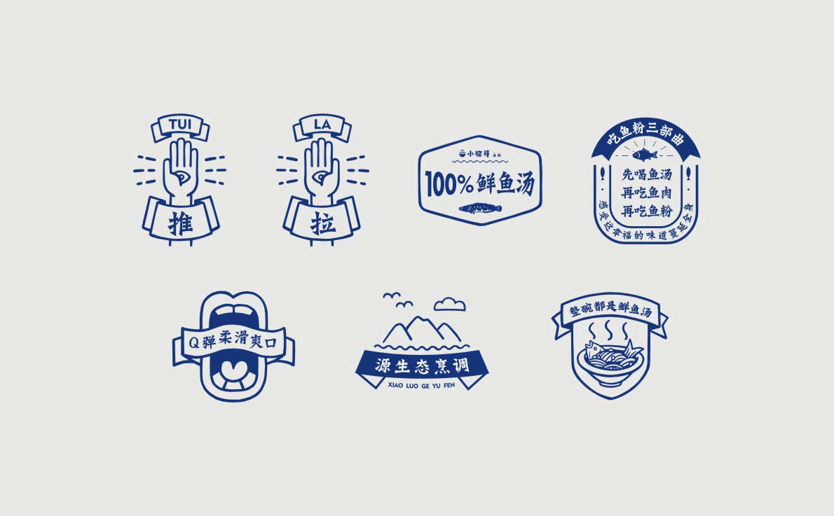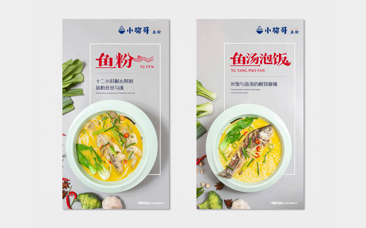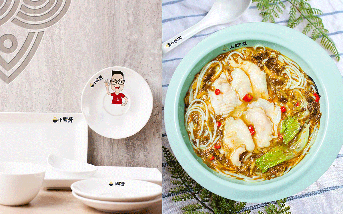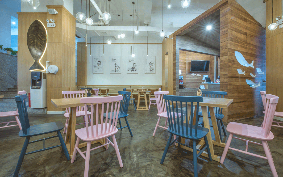 這是2018年中世銳意設計接受委托的一個小型輕食餐飲項目,委托人已經在當地成功運營了另一個知名度頗高的簡餐品牌——“挑香小面”,這一次重新建立全新品牌,是想拓展餐飲管理公司的產品范圍,并建立更加時尚的輕食品牌。小駱哥魚粉從命名開始,就自帶了濃濃的人情味,用小駱哥本人的昵稱作為品牌名,也展現了委托人對自己產品的自信。人情味與自信結合、美味與趣味融合,是我們對這個品牌最基本的創作思路。中世銳意設計以小駱哥本人為基本原型創作了系列卡通人物插畫;我們創作了系列關注年輕人學習、生活中內心波瀾的小段子;我們在空間設計中嵌入魚元素的造型,讓小魚空間中游弋,使其成為品牌的超級符號;我們用原生態實木設計的戶外招牌,展現了濃濃的人情味; 獲得第13屆“創意中國”設計大獎賽全國金獎。