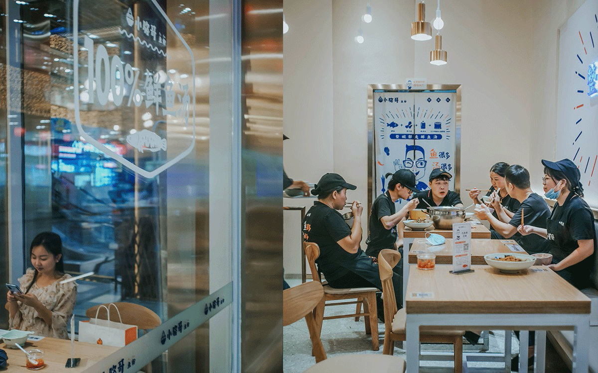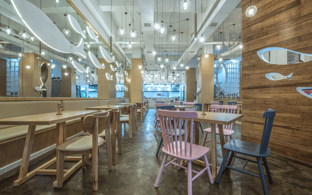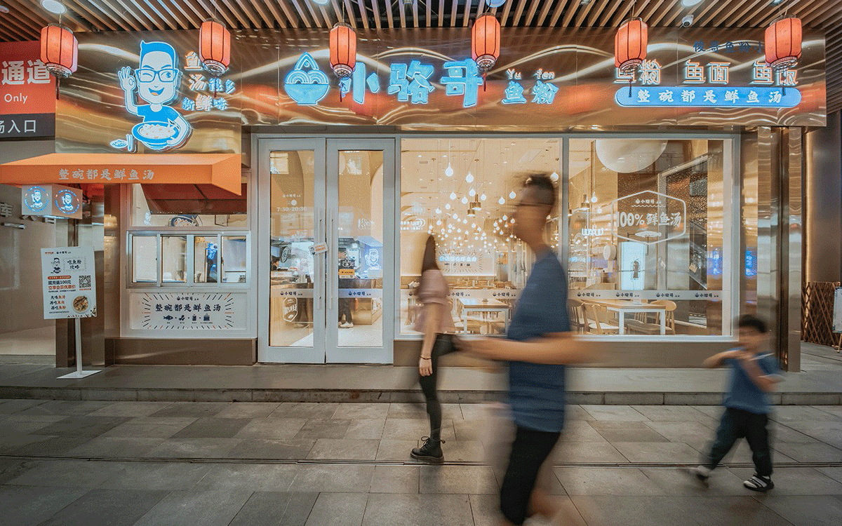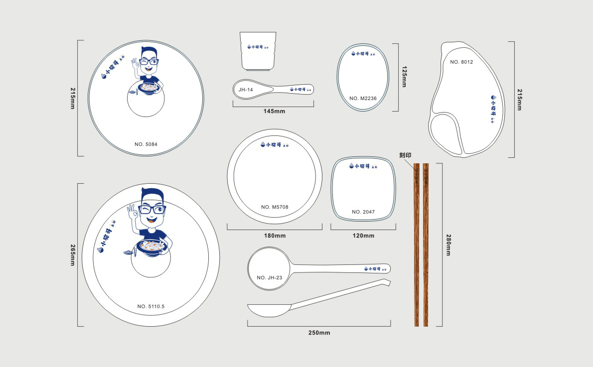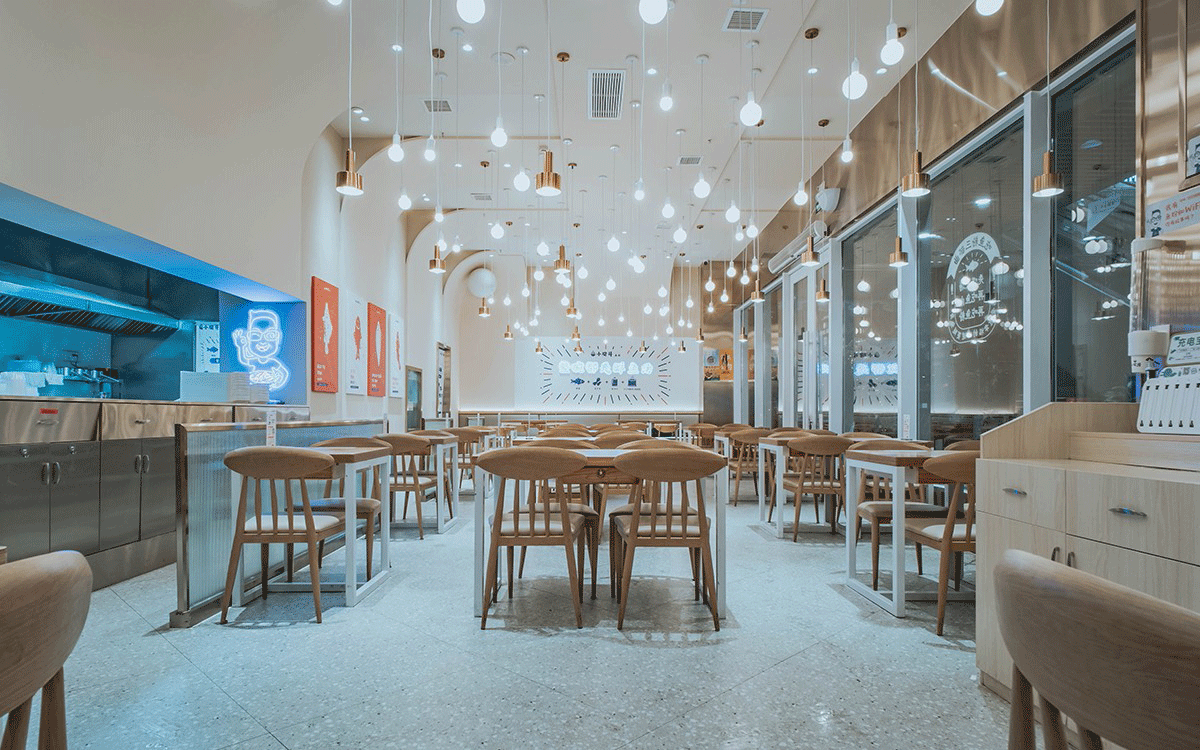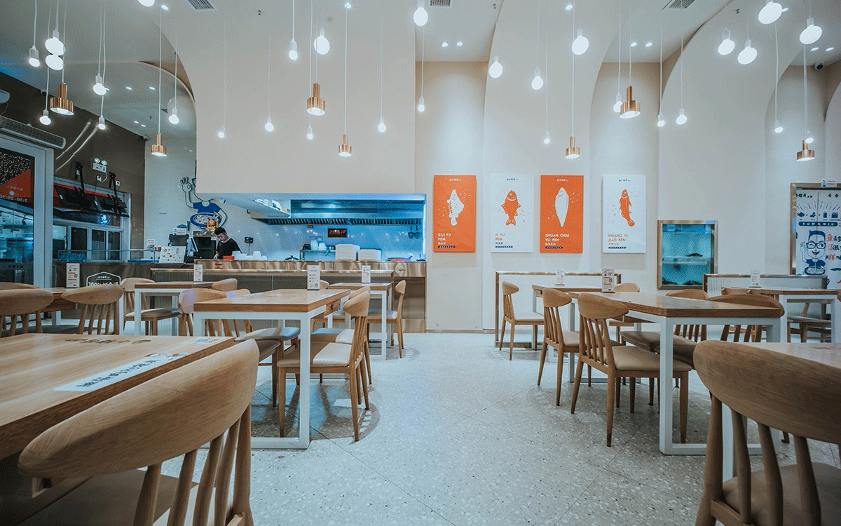 這是2018年中世銳意設計接受委托的一個小型輕食餐飲項目,委托人已經在當地成功運營了另一個知名度頗高的簡餐品牌——“挑香小面”,這一次重新建立全新品牌,是想拓展餐飲管理公司的產品范圍,并建立更加時尚的輕食品牌。小駱哥魚粉從命名開始,就自帶了濃濃的人情味,用小駱哥本人的昵稱作為品牌名,也展現了委托人對自己產品的自信。人情味與自信結合、美味與趣味融合,是我們對這個品牌最基本的創作思路。中世銳意設計以小駱哥本人為基本原型創作了系列卡通人物插畫;我們創作了系列關注年輕人學習、生活中內心波瀾的小段子;我們在空間設計中嵌入魚元素的造型,讓小魚空間中游弋,使其成為品牌的超級符號;我們用原生態實木設計的戶外招牌,展現了濃濃的人情味; 獲得第13屆“創意中國”設計大獎賽全國金獎。